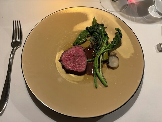 →赤身肉で柔らかく焼き上げられている。噛んでも噛んでも旨味が出て来る。料理に対するワインのアプローチは素直、だけど、感動的においしい。