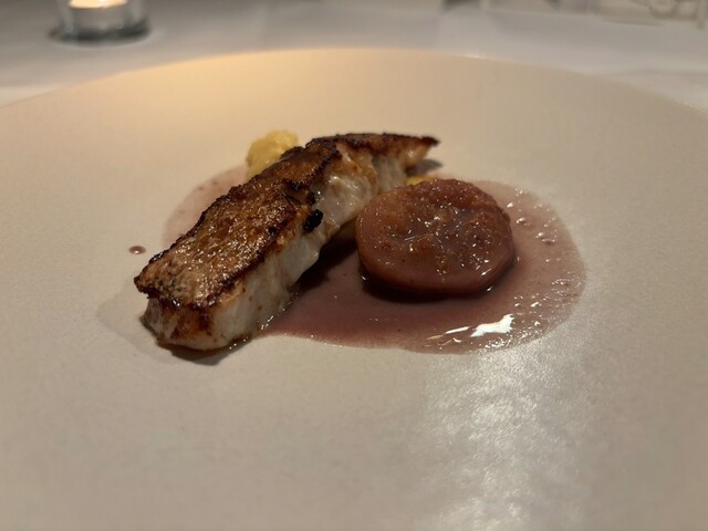 ⑦魚料理:イシナギの焼きもの 無花果 とうもろこしのポレンタ