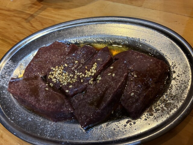 前から気になってた食肉センターのチェーン店で期待高で来店。注文は良く来るという一人にお任せして、5種盛りやレバー、マルチョウなどたくさん出てきました。その中でも厚切り上タンがホントに美味しかった。もっも美味しいお店はあるんだろうけど、こんな庶民系焼肉店で分厚くて歯応えも丁度良くて程よく柔らかいタンはなかなかお目にかかれない、きっと。これを食べ放題のお通しで出てくるキャベツの千切りと一緒に食べるとタンの歯応えとキャベツのしんなりシャキシャキ感がベストマッチ。そのほかも結構注文したけど、どれも美味しかったな。お陰様でドリンクハッピーアワーの料金を横目に通常料金で結構な量飲んでしまいました。また何かの機会でぜひ伺いたい焼肉屋さんでした。ご馳走様でした。