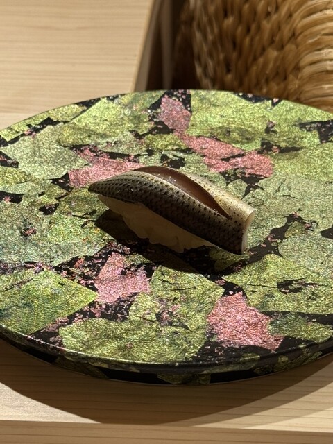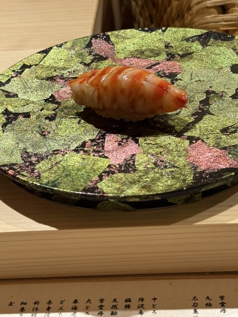 酢が馴染んでいない出来たてのシャリ、ミョウバン不使用のウニでこれほど濃厚で美味しいものも初でした。 道具・食器・グラスも上品で、握りは期待とおり美味しい。グラスの白ワインも美味しくて楽しかった。お鮨に赤ワインは合わせてもらった事が無く、ソムリエさんにお願いし軽めのピノをいただきました。穴子とトロタクの間だったからかなー