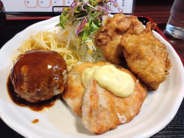 Bセットは、チキンのタルタルソース添えにハンバーグに唐揚げのセット。