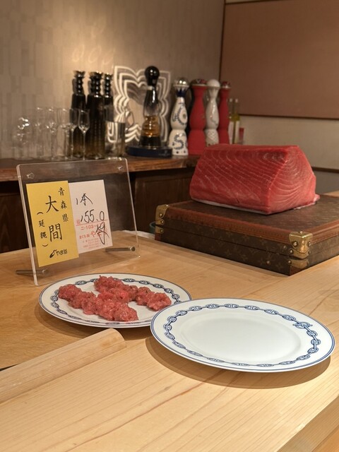 店内は凛とした雰囲気の白木のL字カウンター11席で、カウンターにはルイヴィトンのアタッシュケースが並べられています。