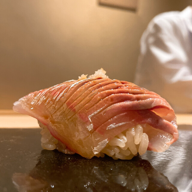 香りの余韻、シャリの温度感に悩殺。最高です。天草の白甘鯛は香りと身質の酔いしれ