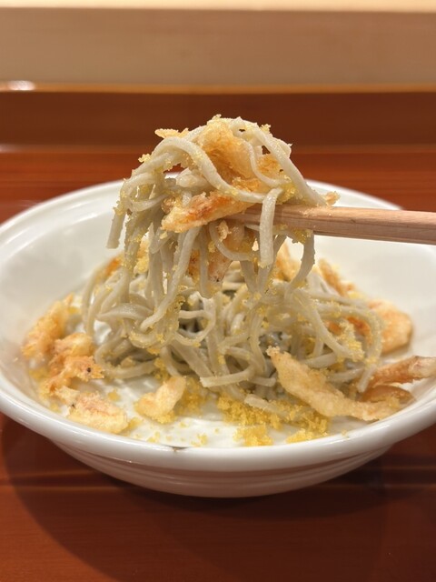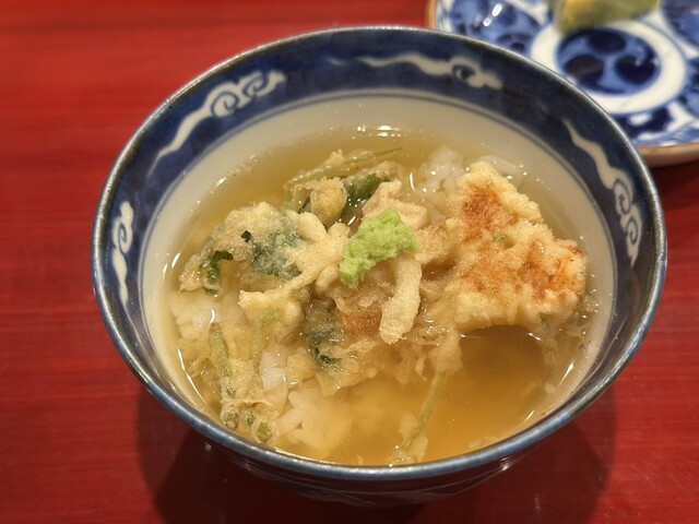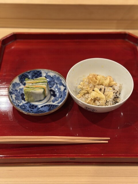 天ぷら成生で修行され、コースの最後には炊き込みご飯代わりに季節の天バラ飯も美味!