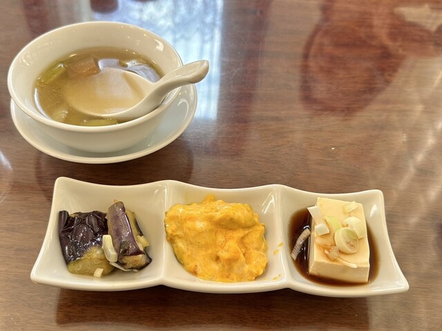 前菜3種美味しく頂き、肉団子をパンで!スープは、冬瓜スープ微妙な出汁何だろう?美味いけど!