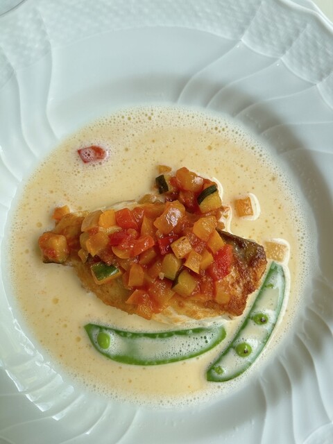 特にサラダと魚が抜群に美味しい。カリッと焼いた旬の魚と白ワインのソースが最高。