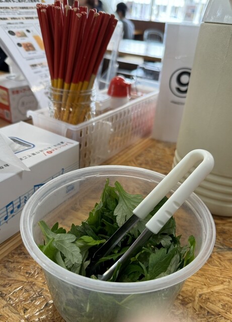 テーブルにはよもぎが置いてあり自由にトッピングができます。