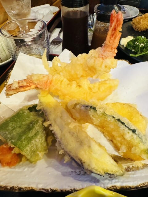 天ぷら盛り合わせと天丼を… 大満足な夜ご飯