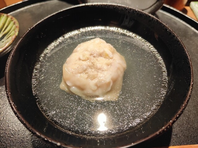 鰹の一番出汁でとった上品な椀味わったあとに焼売を割って二度楽しめます。