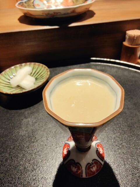 トウモロコシをすりおろして出汁をいれた冷製スープ。これすごく好きw