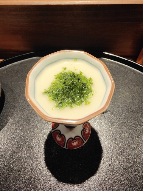 アオサの茶碗蒸し鶏の白子 柚子胡椒