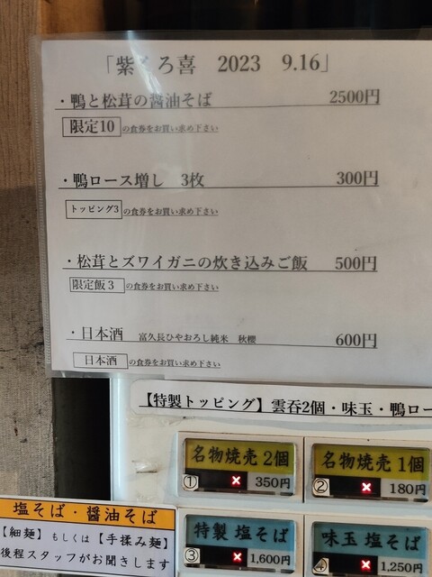 特別営業 紫くろき喜 鴨と松茸の醬油そば