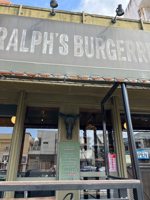2023年9月沖縄着1食目、お腹空いてるので、ガッツリしたものが欲しくて、ハンバーガーを選択。