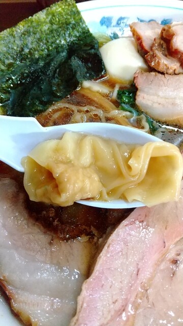 息子は前回、つけ麺でやしたが今回はチュルチュルワンタン(6ケ)を旨し❗️で味わってやした!