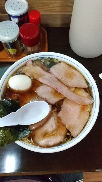 焼豚メン焼豚メン大盛+半熟煮玉子(^-^)/