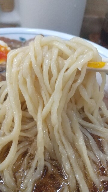 まずはスープ、鶏?出汁と醤油が絶妙❗浮き油の甘味を感じコクがありやす(前回は醤油を強く感じたがまろやかな味わいに変わってやした)ここら辺まもも食べログポイントが徐々に上がっている内容なのか?