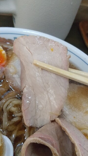 チャーシュー、かぶり・ばら・ローススープと噛みこむと旨いねぇ❗️旨しスープと絡む麺も旨し(^^)v メンマ・ほうれん草・ナルト・半熟煮玉子このメンツ最高だす❗️