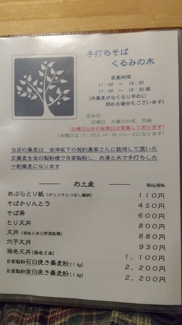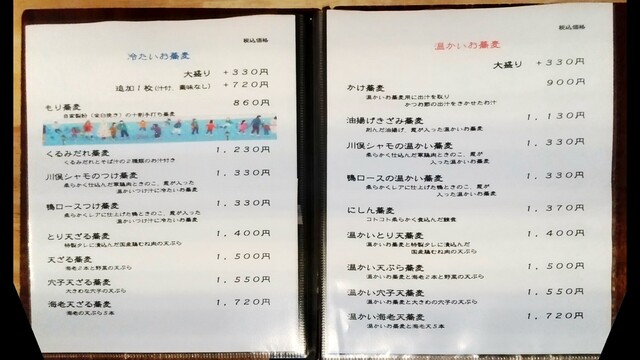 冷温蕎麦メニュー(2019年3月現在)
