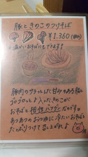 オーダーは息子とお母んが、豚ときのこのつけそば(味見しやすと、きのこの出汁が激旨ぁ(^-^)v)お母ん=ノーマル、息子=そば大盛で("⌒∇⌒")