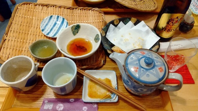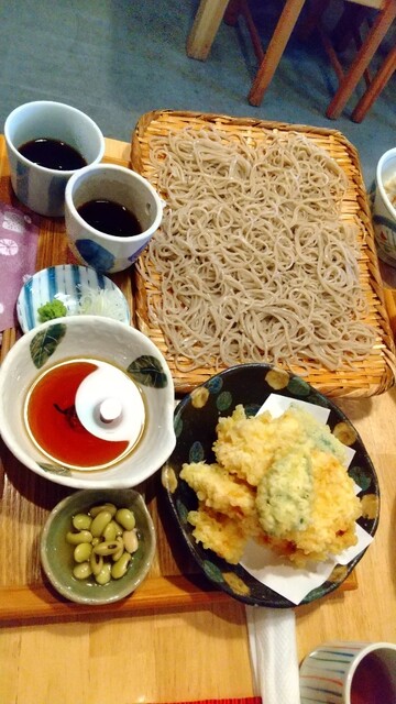 先客は無し!そしてまた友人と恵比寿ビールを呑みながら食す蕎麦が旨し❗旨し❗お母んは、くるみだれソバ、友人がカモロースつけソバ大盛、あっしは天ざる蕎麦大盛をオーダー昼呑みで味覚が少し悪!いいや旨し❗友人もお母んも気に入った様子!美味しい美味いの連発でやした!もち、あっしも旨し❗蕎麦だけでやしたら5、6枚はいけやすねぇ特にお母んはこの辺では1番と言ってやした!