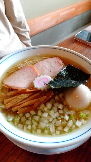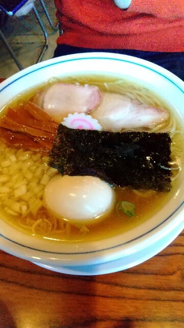 今回食しやしたのは煮干中華玉子入り大盛(麺硬め)、お母んと二人でチャーシューごはんを期待大!