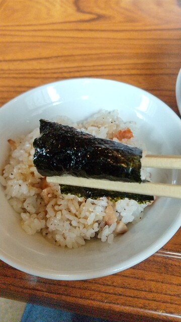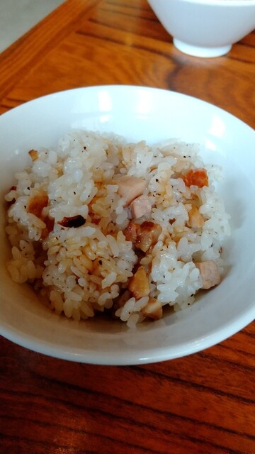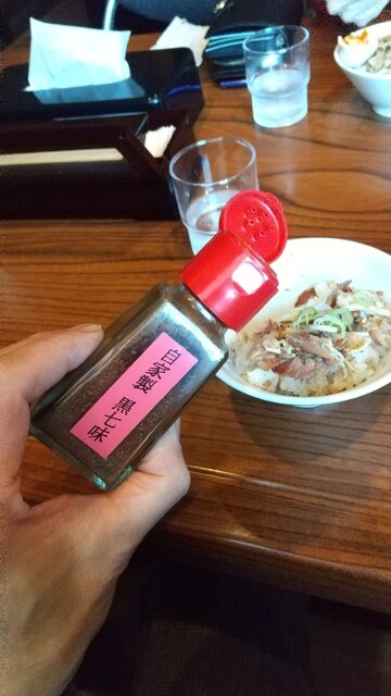 肉ごはんには、ラーのスープかけと自家製黒七味が激旨し(^o^)v この黒七味ラーメンにも合いやす‼️