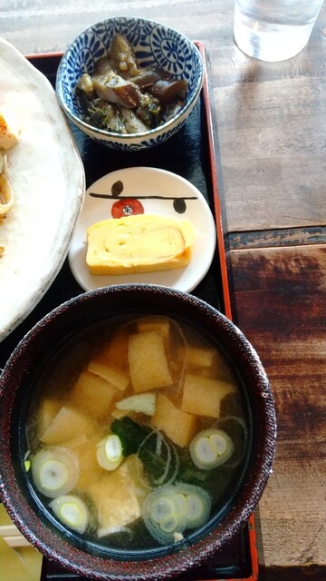 なす炒り、玉子焼、味噌汁