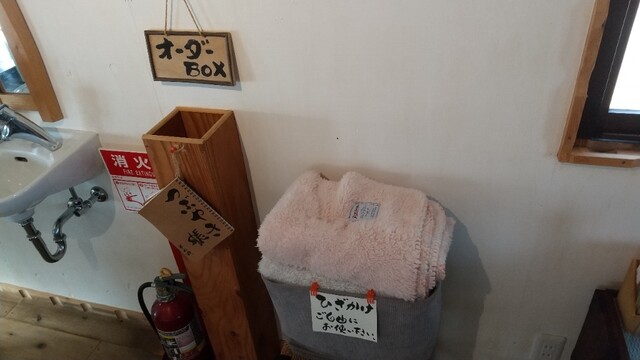 席に有る注文書に記入して左側のオーダーBOXに投入するシステム❗️膝掛け等も準備されてました(^^)d