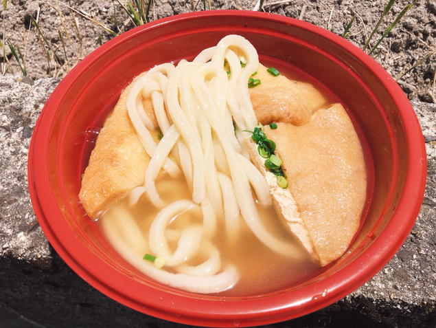 コロナの影響もあり店内での営業はしておらずテイクアウトのみ、確認すると駐車場で食べても良いとのことなので、かけうどんにきつね揚げをトッピングで注文