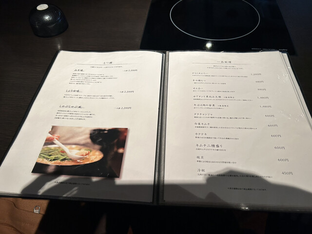 注文はスタッフさんお勧めのモツ鍋味噌味(2200円)✖️2からしめんたい(1200円)牛の酢モツ(880円)をお願いします。