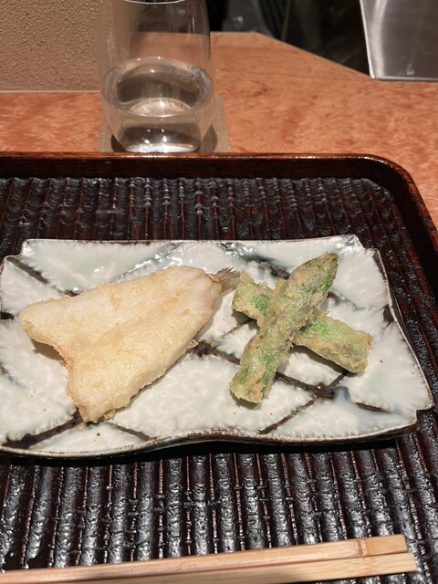 オープンした時からずーっと気になっていたお蕎麦屋さん、当日にたまたま予約が取れて伺ってみました。お店の中に入ると落ち着いた照明とL字のカウンター席、8人くらい入れるだろうか?静かでものすごく落ち着く空間です。奥にテーブル席もありました。飲み物は?と聞かれたのですがメニューはありませんでした。なので無難に瓶ビールと、その後は勧められるがままに日本酒を3種類ほど頂きました。お料理はお品書きはあるもののお値段は分かりません。一体幾らになるのだろうか?と店の佇まいから動揺しましたが。初めてなのでコースのようなものはありますか?とお聞きして出してもらうことに。お料理がとても美味しく、あまりお蕎麦屋さんの経験がないのでよく分からないのですがわたしが知っている蕎麦屋はもう少しラフな感じが多い。こちらのお店はお蕎麦屋さんというより和食屋さんの印象を受けました。天ぷらがとても美味しかったですね。コースで出てきたアスパラとキス以外にこの日はヤングコーンがありましたが、髭の揚げ方がものすごく綺麗でした。稚鮎も追加。お蕎麦ももちろん美味しく、私がよく行くお蕎麦屋さんと比べると少し高価格帯になるので少し贅沢したい時に行きたいお店です。店主お一人でなさってるようなのでお時間に余裕がある時にゆっくり楽しむお店です。