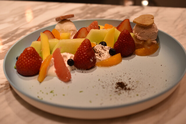 フランス人イケメンパティシエが織りなすアシェットデセール。あまりにイケメンで隣に並ぶと公開処刑間違いなしでつらいっしゅ!