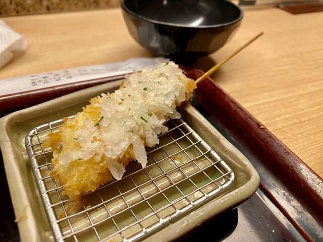 目の前で揚げたての串揚げが食べれるお店。
