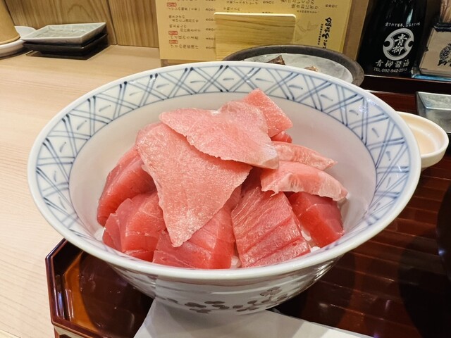 博多駅に降り立ち、ホテルへ向かう途中に本マグロ丼の看板に惹かれて、入店しました。
