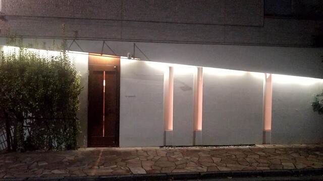 事前にペアリング無しのおまかせコースで予約して再訪しました。外苑東通りから西側にある路地の一角。お店の前にシルバーでle sputnikのプレート。フレンチで脳内トップクラスのスプートニク、めっちゃテソショソ上がります