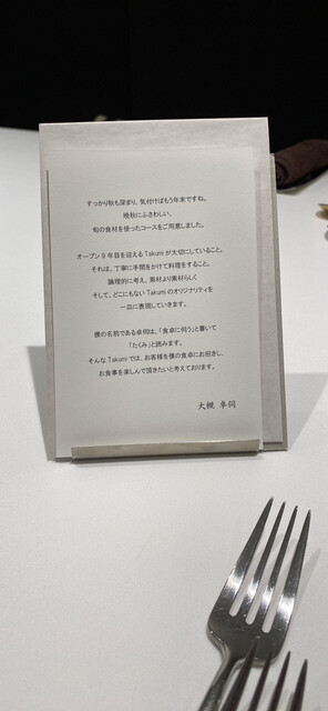 シェフの挨拶と説明でいい雰囲気でコースがスタートします