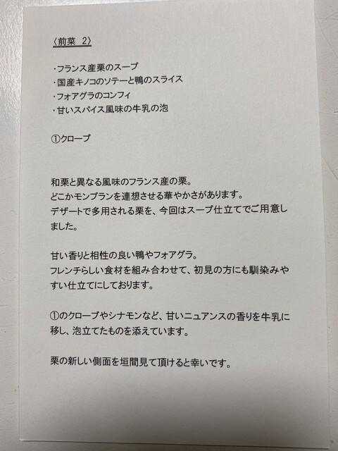 栗のスープで仕立てられており、甘い香りがよくクリーミーで