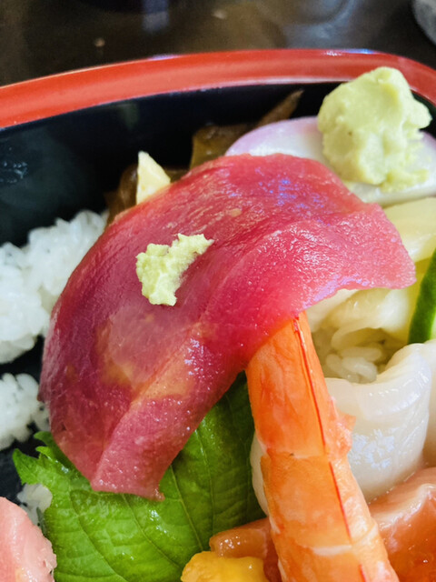 (・うに→甘くとろけておいしい。本当は上ちらしにはうには入っていないようです。メニューの写真を間違えてしまったようです。よくよく過去の写真をみると海鮮丼の写真かな?)