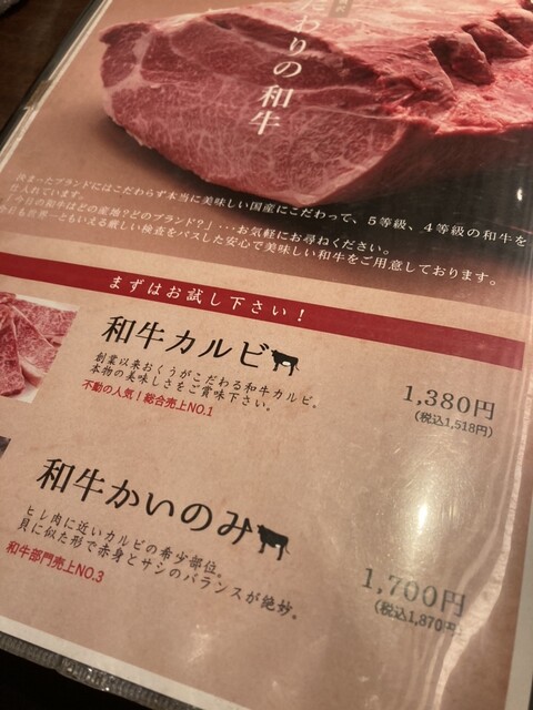 国産牛カルビは黒毛和牛を使用