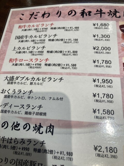 上タン塩と和牛カルビのランチ(2948円)か