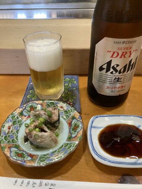 注文したのは、生ビール、地魚握り寿司、あら汁 でございます(^_^)