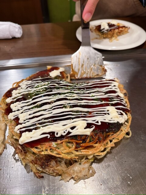 友人に紹介してもらって利用してから、毎月必ず利用しています(^^)。今までは、月島もんじゃ焼きが好きだった娘が、こちらの広島焼きを食べてから、広島焼きの方がが好きになりました笑。お店の方たちも親切で、みなさんの仕事の手際の良さも、際立っています。ランチも、とてもお得で、何回利用したか、数え切れません笑。麺が、好みで選べるのですが、私と娘はパリパリ麺一筋です。夜は予約必須かと思います。