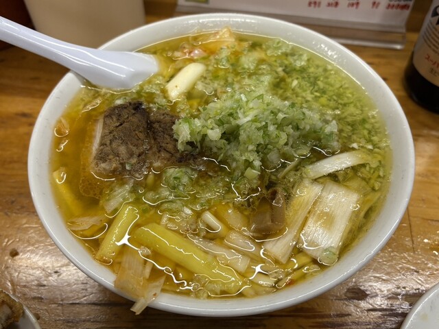 塩半々パイコー別皿辛味ネギトッピング麺固め半麺薬味多め餃子ライス中ビール