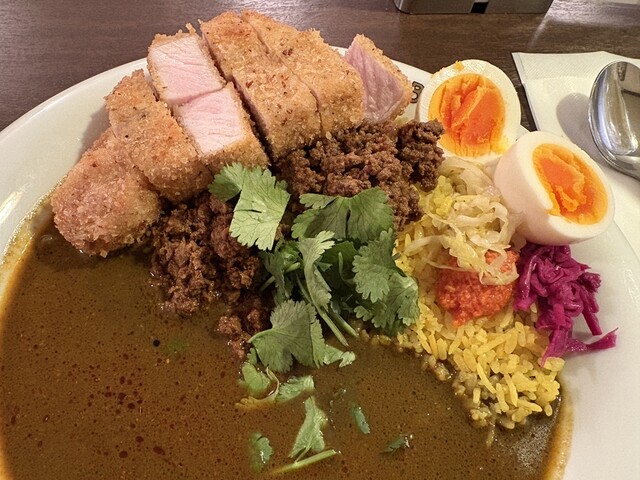 スパイスとんかつカリー(+羊キーマ、+ピクルス煮玉子、辛口