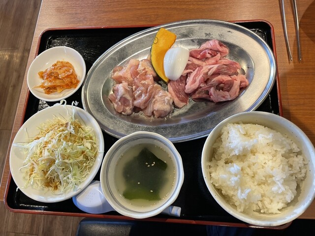 生ラムと鶏肉のセットのお膳が届きます。