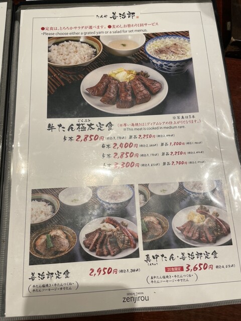 メニュー表見て、牛タン焼き定食の4枚を頼みます。