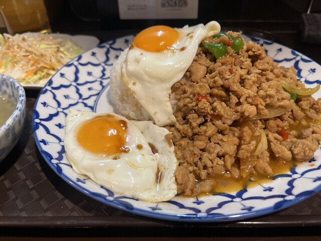 私はガパオに卵とお肉トッピングして頼みました