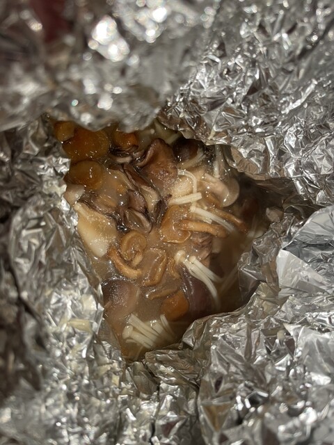 アルミホイルが被されてお皿で提供されたのですが、開けると立ちのぼる松茸の香りが凄い。