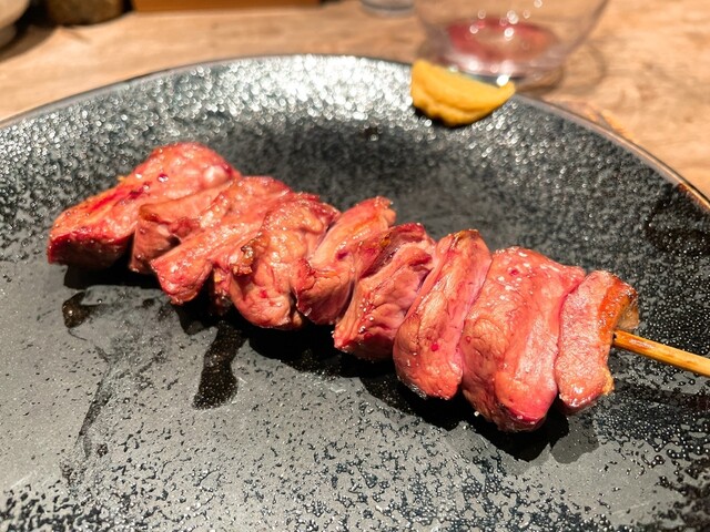 様々な部位が一本に刺さってるので、一口で食感の違いが楽しめて美味い。
