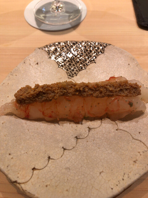飲み物はビールから。一品目は前回同様、ボタン海老。ねっとりした食感が美味い。